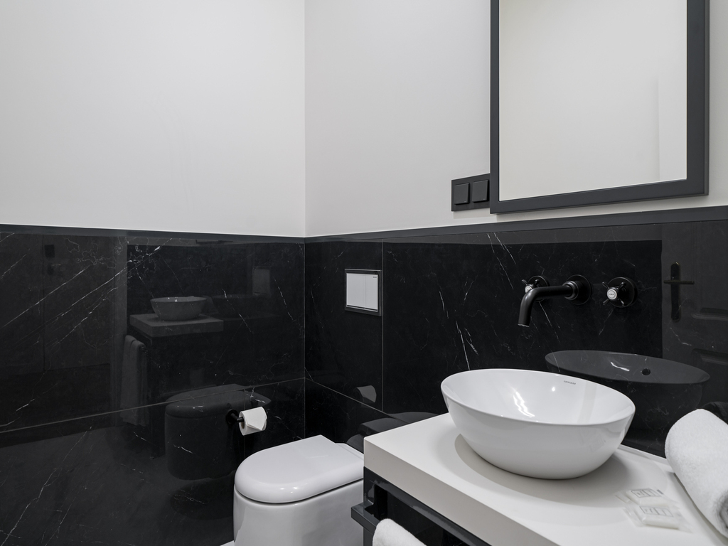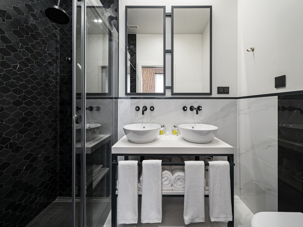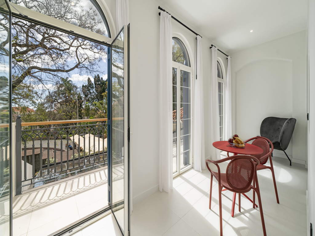 Luxury T1 with bespoke design, premium furnishings, modern tech, and a bright, welcoming feel. Located on the first floor, it comfortably hosts 2+1 guests, thanks to its guest bathroom and spacious sofa setup.