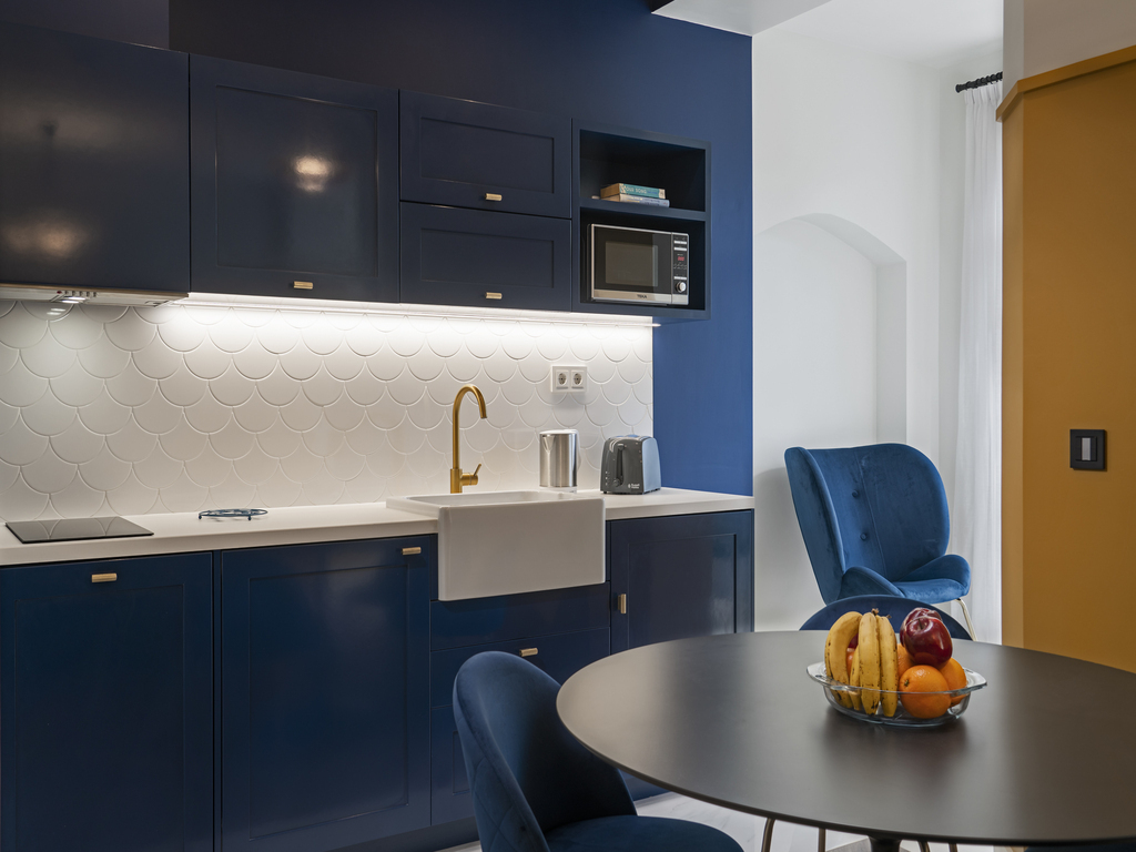 Luxury T1 featuring a spacious layout, high-end finishes, smart amenities, and timeless style. Situated on the second floor, it welcomes 2+1 guests with ease, thanks to its additional bathroom and generous living area.